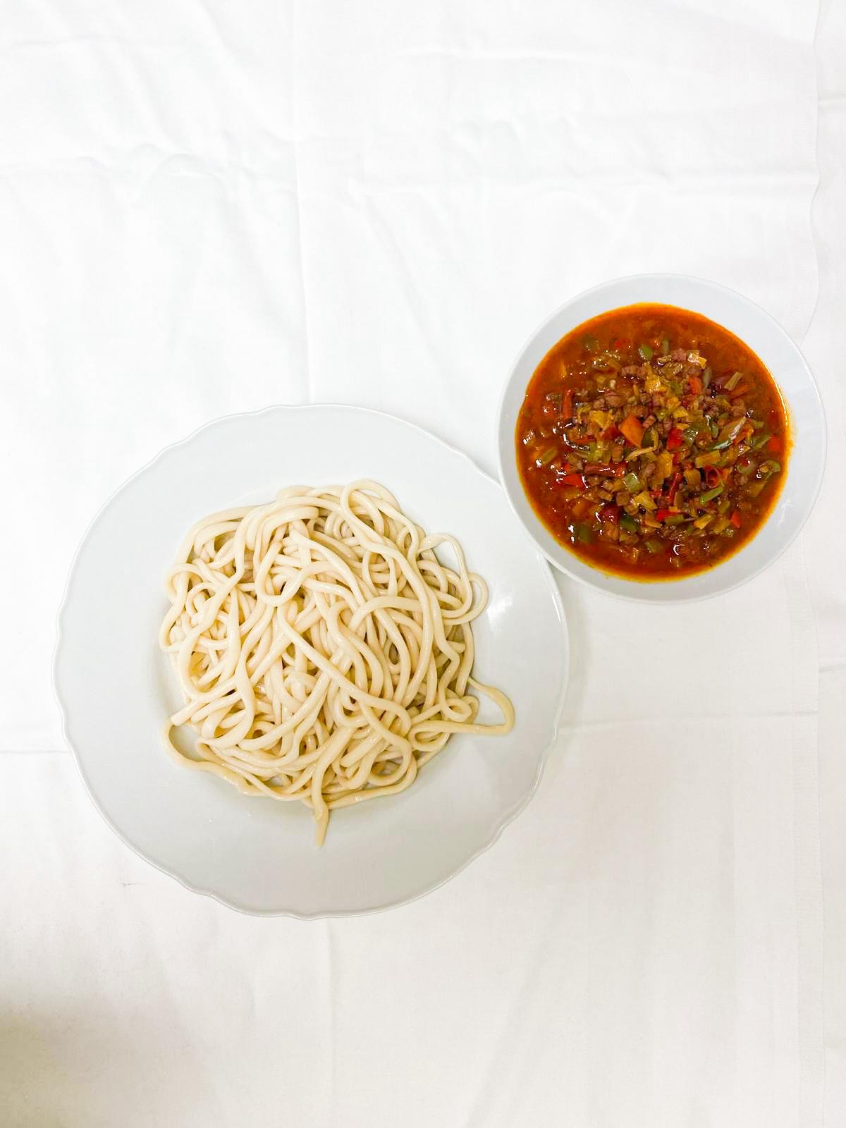 Färsk handgjorda nudlar med wokad nötkött och grönsaker